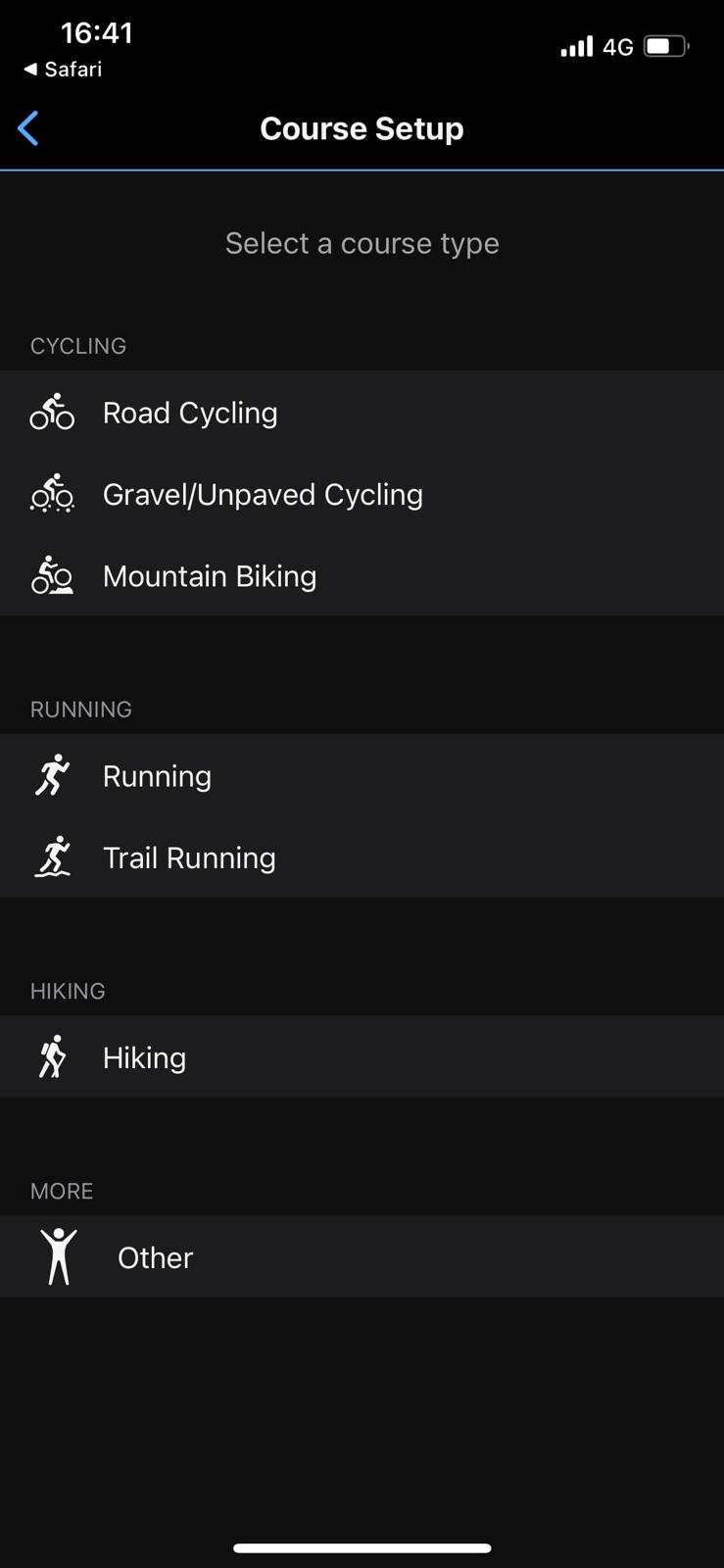 Garmin asks you what type of activity the file relates to, select "Road Cycling".