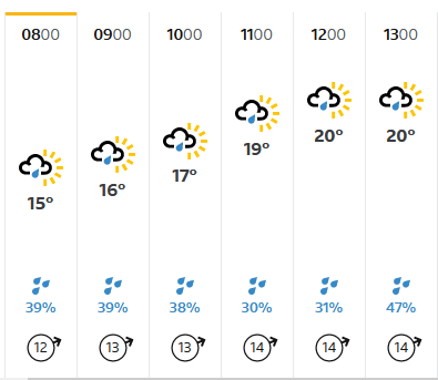 E.g. In this example, the wind is blowing towards the East / North East, so ideally, you want a route which heads out West / South West.